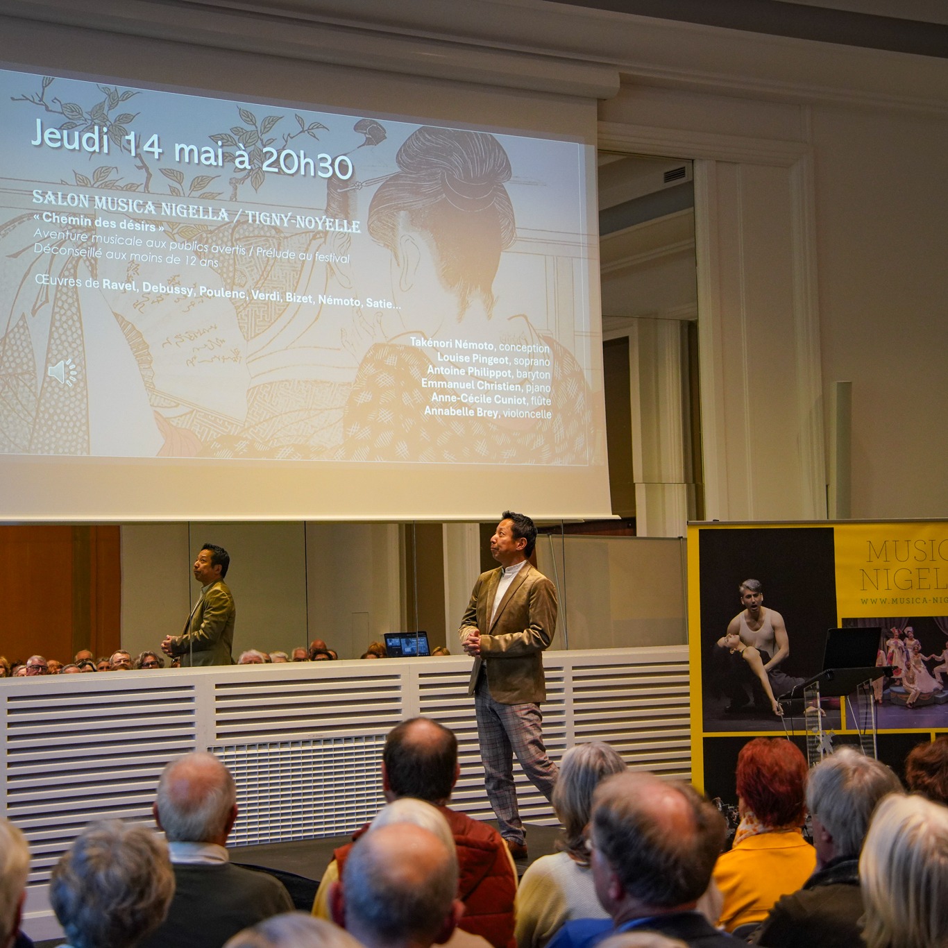 ➡️ Takénori Némoto, directeur artistique de Musica Nigella a présenté la 21ème édition du festival devant un public nombreux et passionné et en présence du président et fondateur Olivier Carreau.