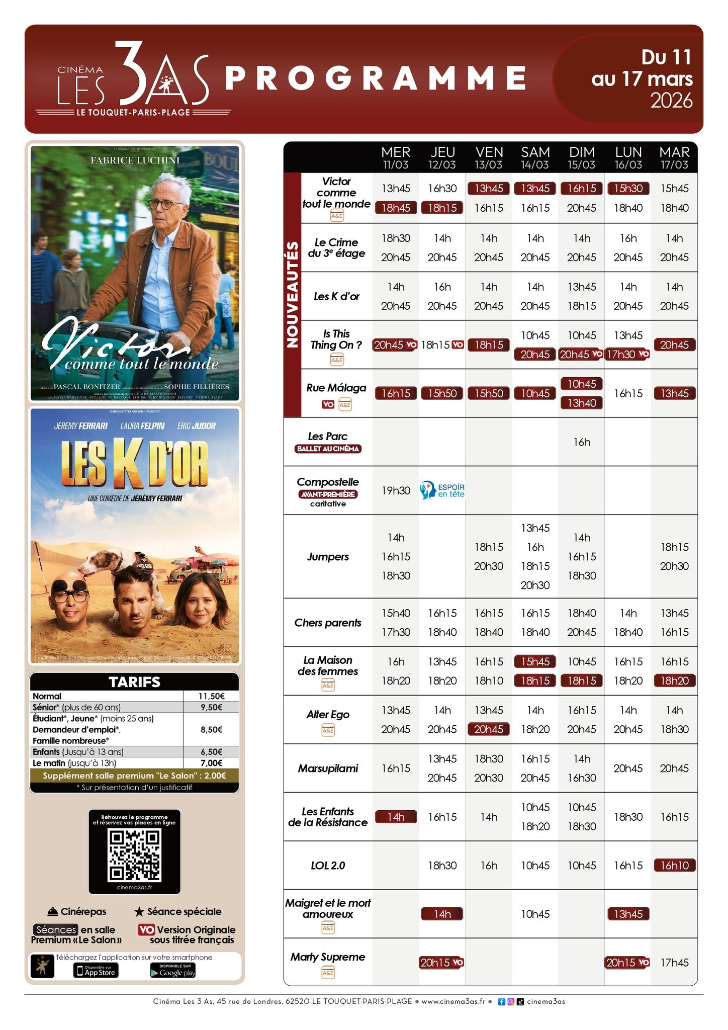 🎥 On est mercredi et le programme de la semaine du cinéma Les 3 As est sorti ! 🤩 Séances de la semaine, horaires, tarifs, événements,.. le programme et les infos pratiques juste ici et sur cinema3as.fr! ⬇