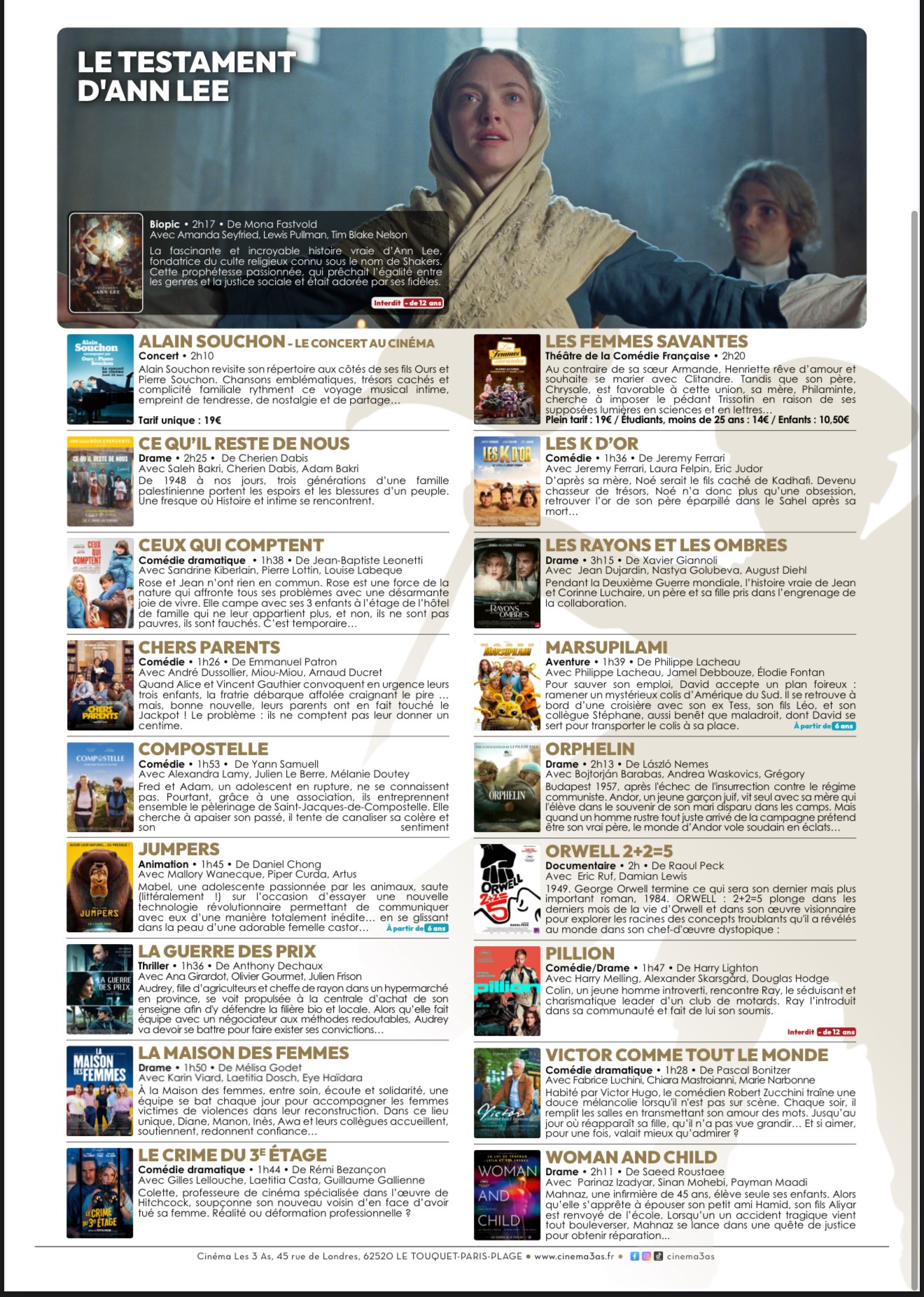 Séances de la semaine, horaires, tarifs, événements,.. le programme et les infos pratiques juste ici et sur cinema3as.fr! ⬇