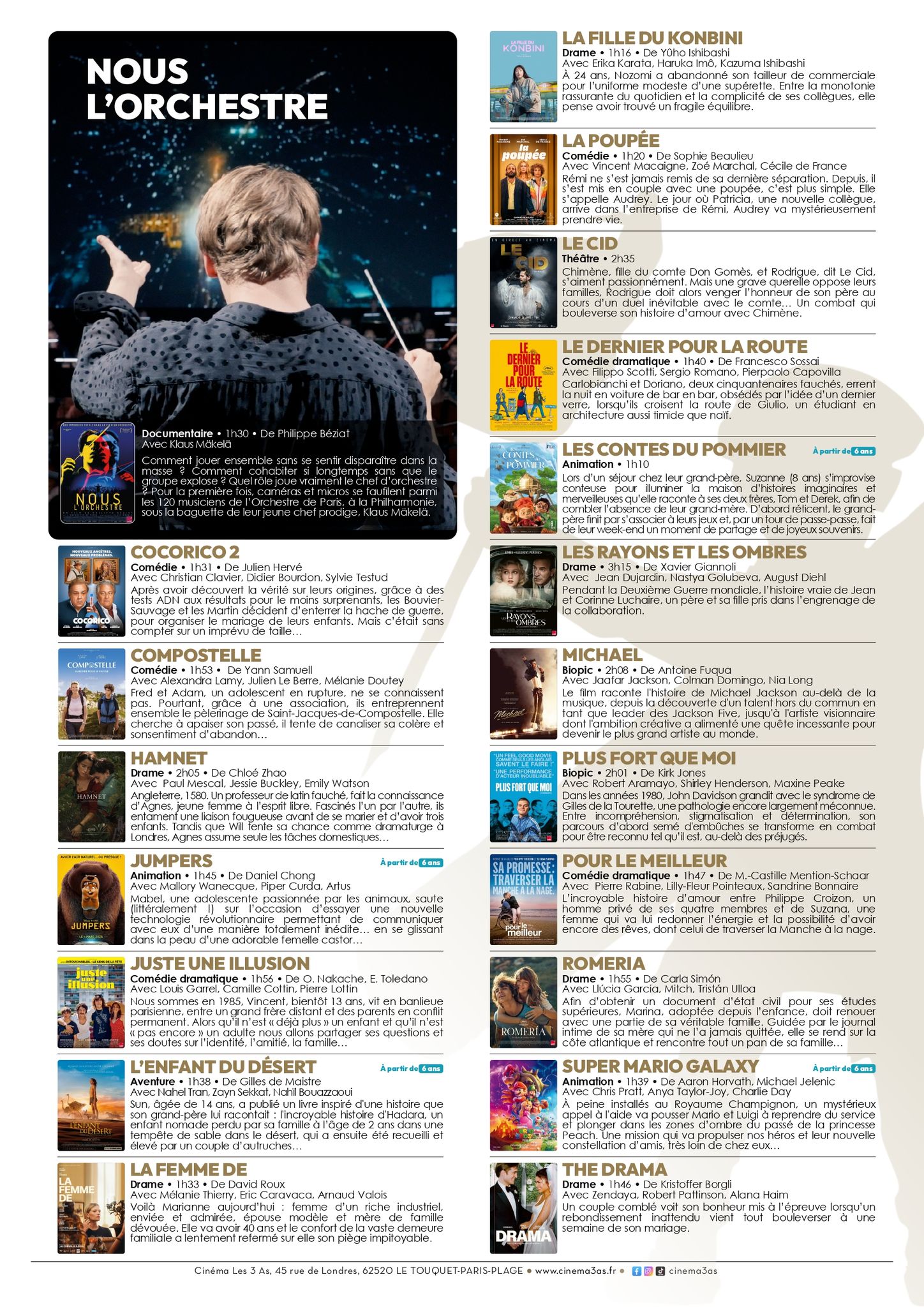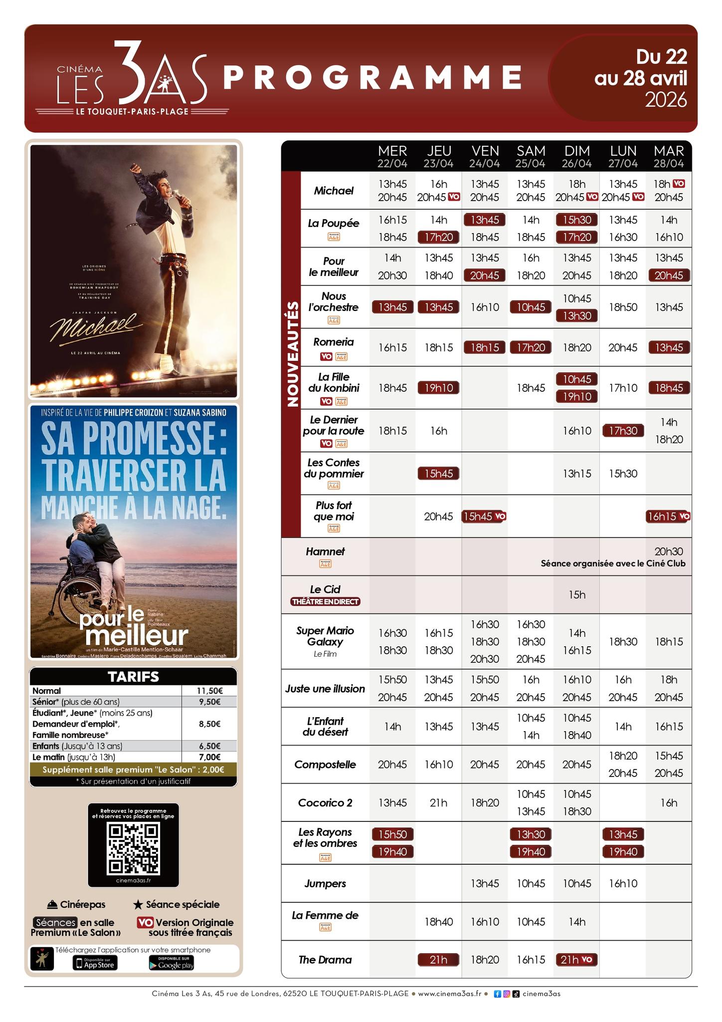 🎥 On est mercredi et le programme de la semaine du cinéma Les 3 As est sorti ! 🤩 Séances de la semaine, horaires, tarifs, événements,.. le programme et les infos pratiques juste ici et sur cinema3as.fr! ⬇